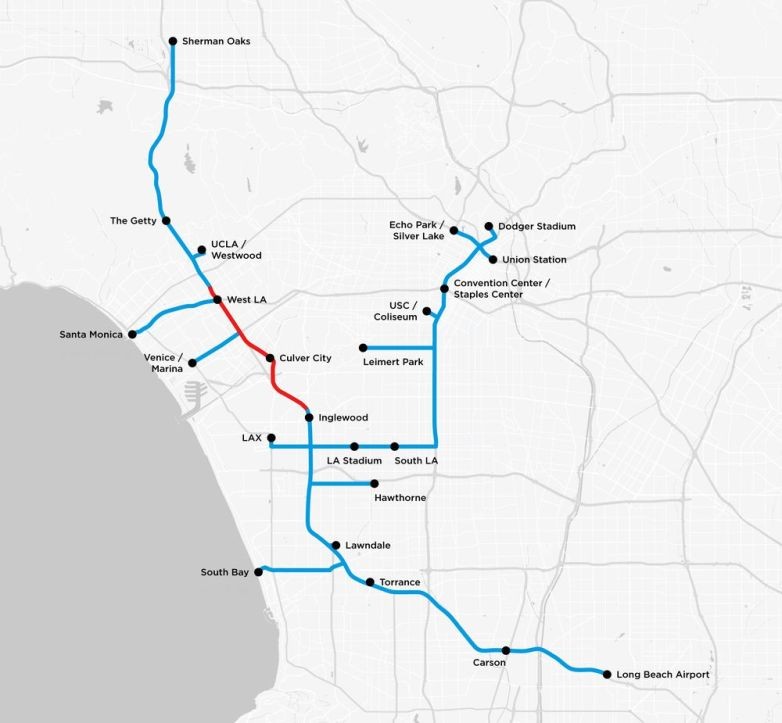 A The Boring Company, empresa de Elon Musk, divulgou um mapa dos sonhos de como ficaria a rede de transporte subterrâneo em Los Angeles. O mapa demonstra que a ideia parece ter recebido progressos reais, em seu primeiro teste. Isso significa que os planos de Musk são realmente sérios. Ainda é possível observar que as pretensões do empresário são de mudar a infraestrutura de Los Angeles para sempre. Veja na imagem abaixo: